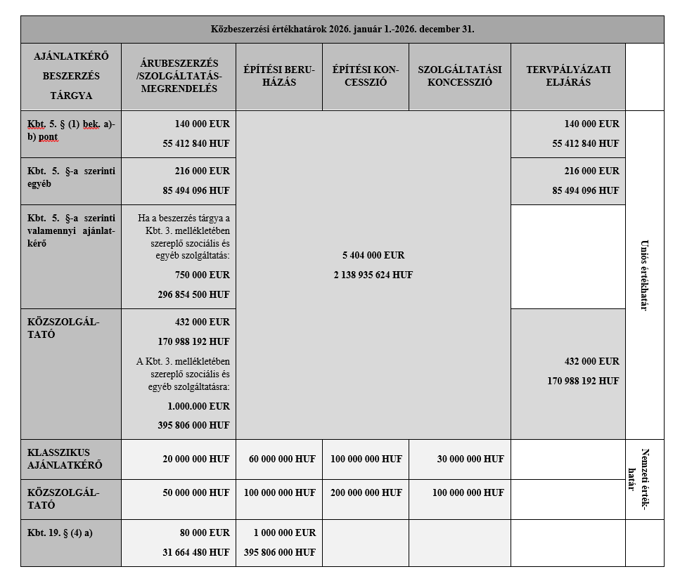 A 2026. január 1-jétől – két évig - irányadó pontos értékhatárok 2025. október 22-én kerültek megállapításra.